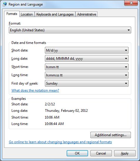 There are System date formats and Internal date formats. Internal date formats are as noted in the 4D documentation page for "Date Display Formats" (https://doc.4d.com/4Dv12.3/help/Title/en/page179.html). System date formats are dependent on the system format set on the machine 4D is running on. On Windows, the short date and long date format can be changed via the "Region and Language" window as shown: