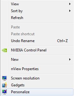 - Right click on the desktop to bring up the following contextual menu and select Personalize