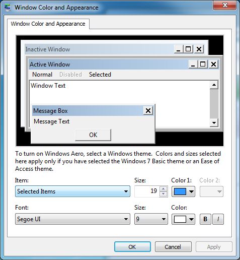 - In the Item drop-down menu, select Selected Items and change Color1 to the desired color