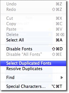 2) From the Edit menu use "Select Duplicated Fonts"