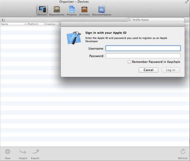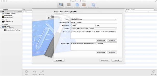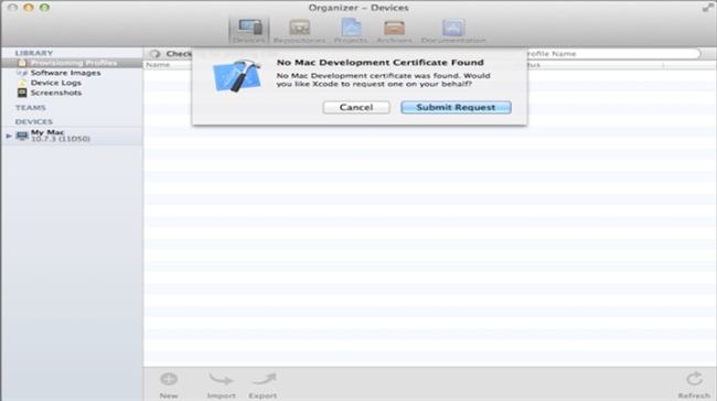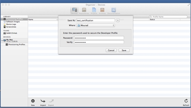 - If you are a member of the team, and your application is approved, open the Organizer devices, select "Provisioning Profiles" in the "Library" section and click "Refresh", then select the team you belong to in "Teams".