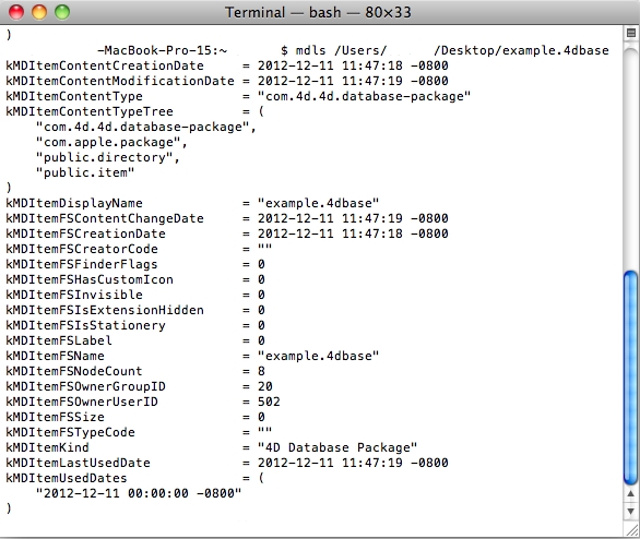 The terminal will display (kMDItemContentType = ""). In the quotes will be the UTI information.