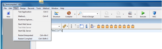 A 4D database can be executed in either compiled mode or interpreted mode. There are several ways to switch between the two modes.