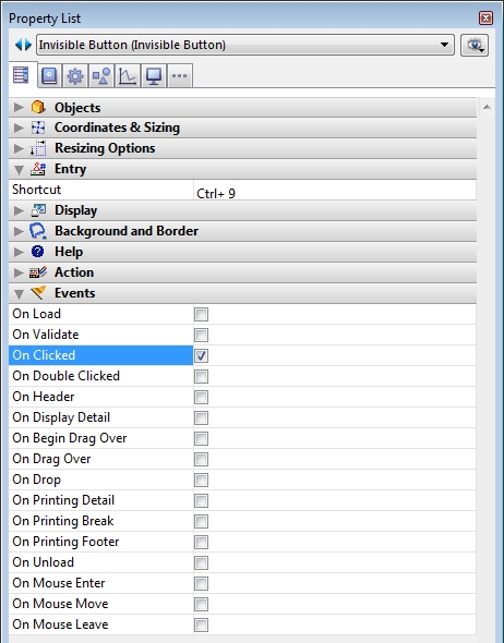 By assigning a shortcut to the invisible button, it can be triggered anywhere on the form and call the object method. The setup are as follows:
