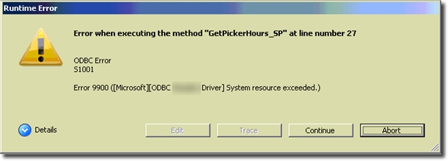 Tech Tip: MS Error 9900 "System resource exceeded" when using ODBC