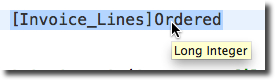 A second or two after the mouse has stopped moving a hint will appear displaying how the field is defined, as shown in the images below.