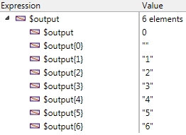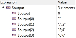 | C_TEXT($input) ARRAY TEXT($output;0) $input:="A;2,B;4,C;6" STRING_OF_VALUES_TO_4D_ARRAY($input;",";->$output) |