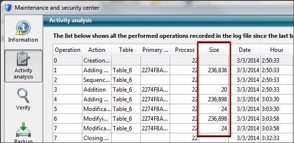 Defined by the size of the operation. Mainly defined by the size of the record. Note that the MSC Activity Analysis pane includes the size for each operation: