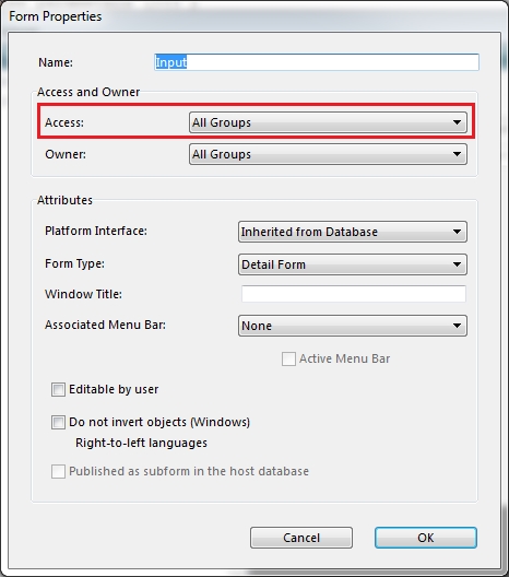 To edit the form accessibility, right click on the form in the explorer and select Form Properties. From there, set the Accessibility to the appropriate group.