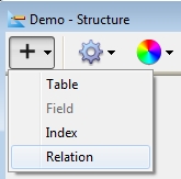 3) Click the + icon on the upper left of the window and select Relation. The relationship is created with the graphical representation also generated.