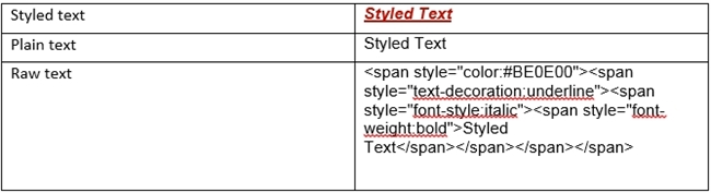 Raw text: Styling text displayed along with plain text. The raw text of a styled text variable can be obtained using the command ST SET OPTION.