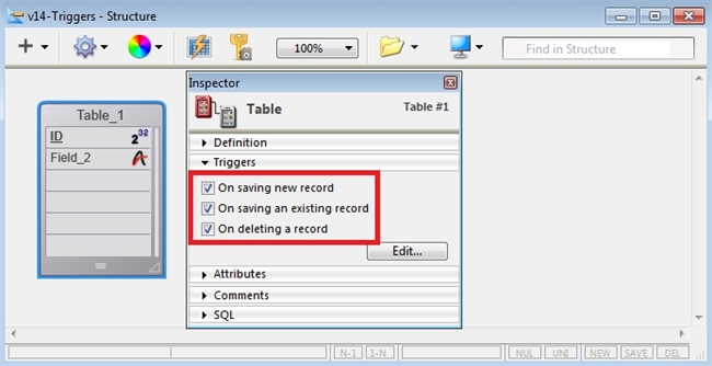 To add a trigger to the table, first open the structure window: