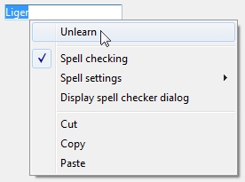 Then from an object that can contain a text contextually click the word that needs to be removed and a context menu will appear. From the menu select 'Unlearn' as shown below.