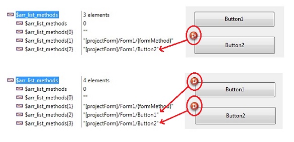 When an object method is created, a reference is made to an internal path when calling METHOD GET PATHS. The picture below shows that the object methods are located in a project form named "Form1". By knowing the location, code in the object method can be copied or modified using METHOD GET CODE and METHOD SET CODE.