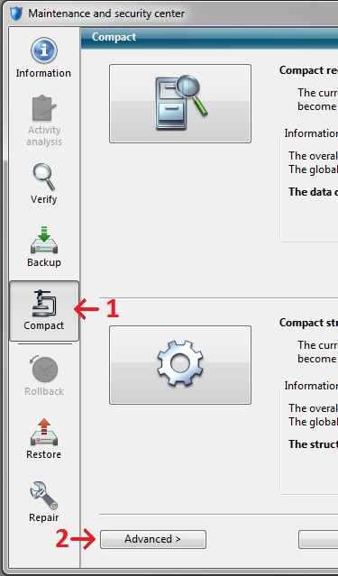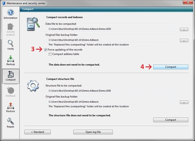 Note: If a standard compact is performed without the forced update then the data that was saved externally will not exist.