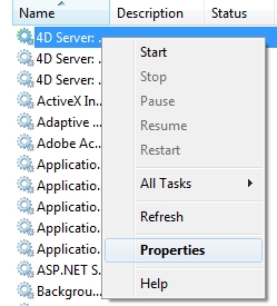 Find the name of service in the list, right click the name and select properties to open the properties window.
