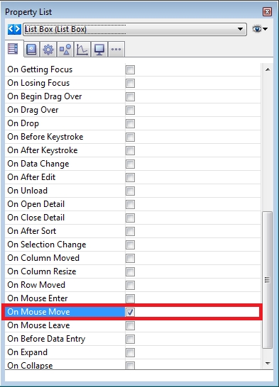 The Mouse Move event would need to be checked in the Listbox's property list shown below: