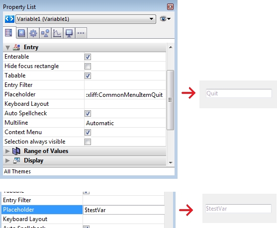 If set in the property list only xliffs will be dynamic while variable names will be taken as a litteral string as shown below.