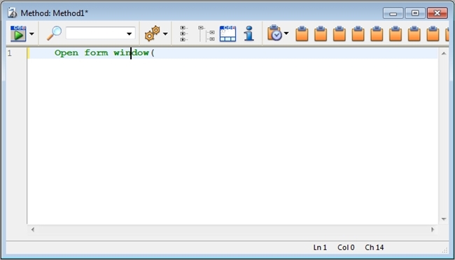 The command name and the parameters can be views at the bottom of the method editor window.