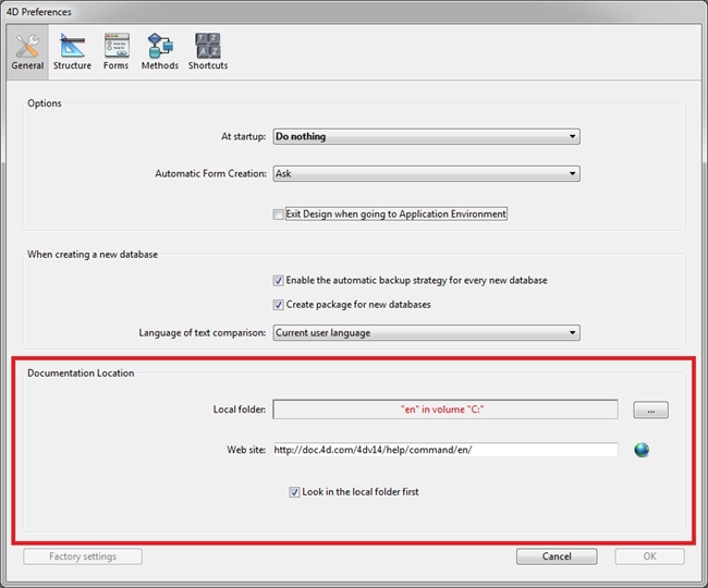 The documentation location can be edited in the preference page: