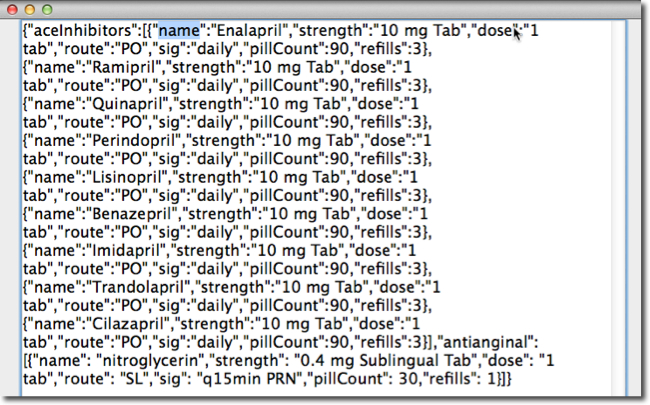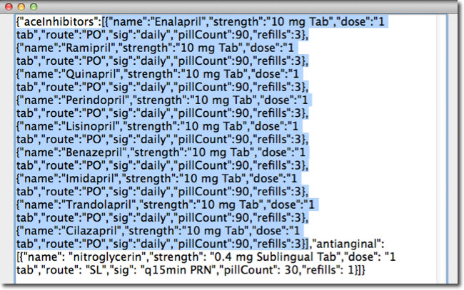 Example, with the block of JSON shown in Image 1, the need is to highlight for selection all the text contained between balanced "[{" and "}]".