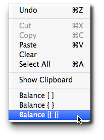 When working with text, most third party text, code, and method editors have a feature of function to aid a developer in highlighting the "Balancing" open and closing characters or tags. In 4D, it is a preference named "Highlight of the parentheses". In BBedit and Text Wrangler, its called "Balance". In Sublime Text, it has two names "Expand Selection to Brackets" and "Expand Selection to Scope."