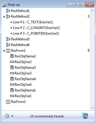 It is possible to copy the Method Names and Form Names of the Results from the Find window. This can be done by highlighting the Method Names and Form Names to be copied and clicking and dragging that selection to any text editor. When copied over methods names will be copied as it while form names will have quotations surrounding them, examples will be shown below. Selecting or attempting to copy the names of any items listed under a Method or Form will do nothing and with notify the user by showing the Unavailable mouse pointer icon.
