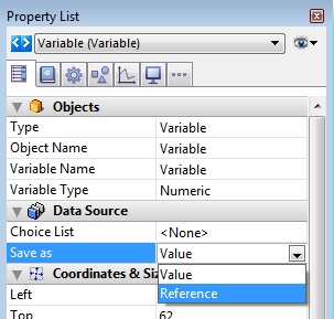 Note: To use the save as a reference setting the objects' typing must be a Number type.