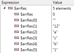 | C_POINTER($1->;$2->) ARRAY TEXT($arrIn;0) ARRAY TEXT($arrOut;0) C_TEXT($pattern;$resStr;$resClean) C_BOOLEAN($err) COPY ARRAY($1->;$arrIn) $pattern:="[^{|}$|\"\\d*\":|\"]" $err:=PHP Execute("";"array_unique";$resStr;->$arrIn) $err:=PHP Execute("";"preg_replace";$resClean;$pattern;"";->$resStr) $err:=PHP Execute("";"explode";$arrOut;",";->$resClean) COPY ARRAY($arrOut;$2->) |