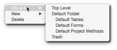 The Home tab come with four Default folders already installed to help one get started. Developers are free to use these folder or create folders and subfolders as necessary to provide the desired organization for tables, forms and methods.
