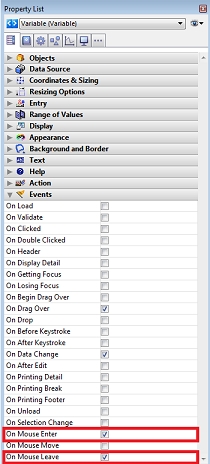 The variable object would need to activate the Mouse Enter and Mouse Leave events as shown below in red: