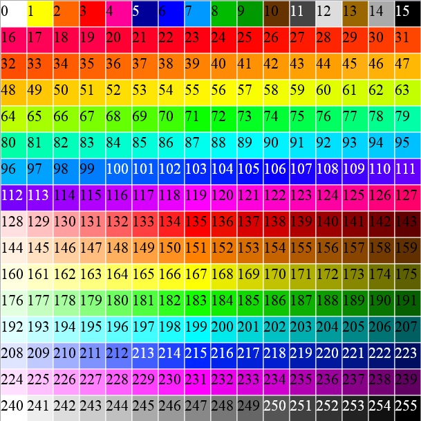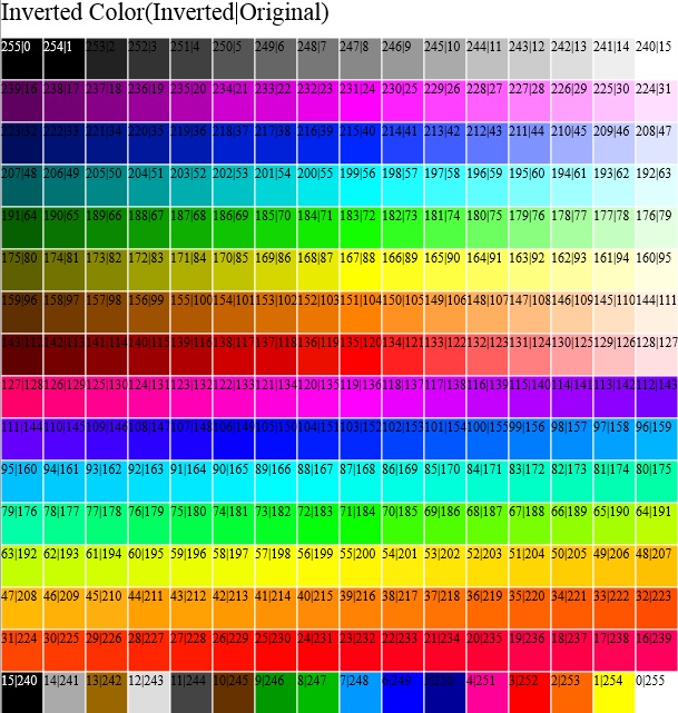 The method Disp_4D_Color_Palette_Inverted will display color palette with the associated number: