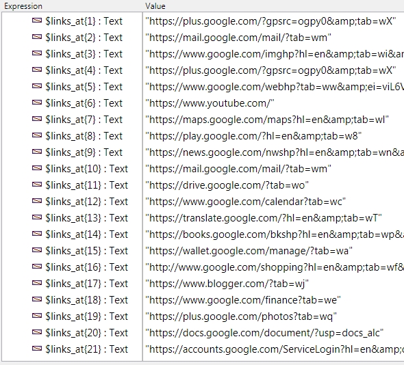 Below is an example of the Utility used to obtain the list of clickable links from www.Google.com by obtaining the html from a Web Area.