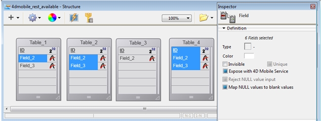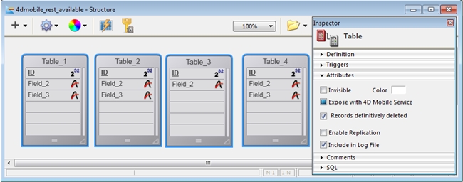 For example, to bulk modify the 'Expose with 4D Mobile Service' table attribute;