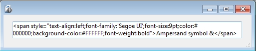 Whenever using styling text tags for rendering inside of variables, fields, listboxes, and etc., there are times when syntax characters ( <, >, &) are needed to be shown as text. The result of the following example may occur while trying to display "&" which fails to render in a variable text: