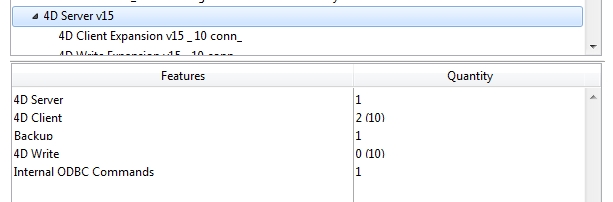 Beginning with 4Dv15, the R releases (ie 4Dv15R2) use a separate set of licenses prepended with the "R-" suffix. These set of licenses are their own set of unique licenses with their own number of features.