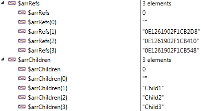 | ARRAY TEXT($arrChildren;0) ARRAY TEXT($arrRefs;0) DOM_GET_CHILDREN($parentRef;->$arrChildren;->$arrRefs) //$parentRef is reference to the parent xml element |