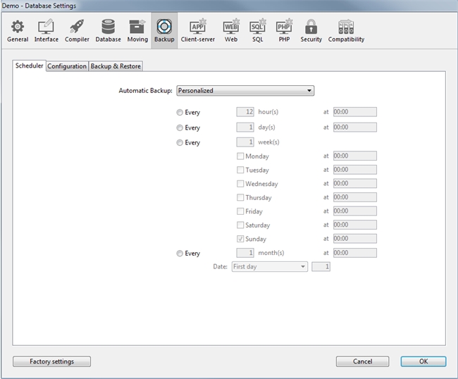 4D databases can be configured to perform automatic backups on a regular schedual which will perform a backup automatically.