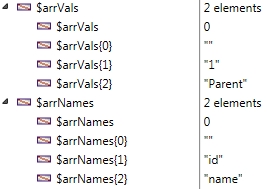 Once ran, the two $arrNames and $arrVals will contain the following values: