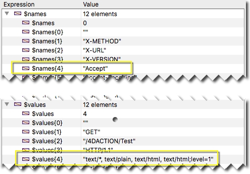 Within 4D the desired MIME type can be captured using the 4D command WEB GET HTTP HEADER, see the image below. In this example, if the Accept header is not present the response is sent using the default MIME type of "text/html."