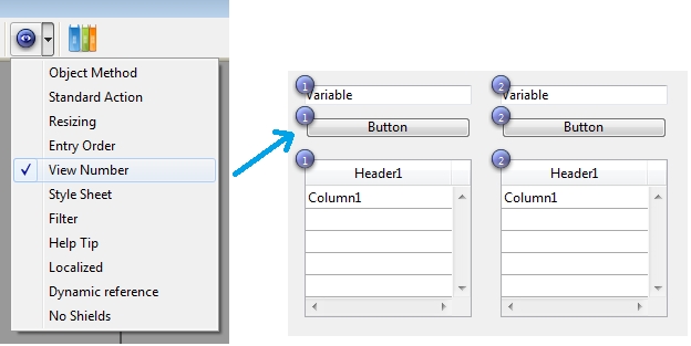 Selecting the "View Number" option in the drop down menu of the form editor can display the view number as shown below: