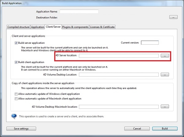 2. 4D application that is building the Client/Server application has to be the same dot release version as the 4D Server 64-bit do release version. Picture below refers to the 4D Server that is being selected in the build process: