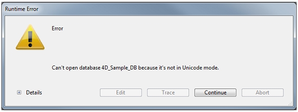 The following message will appear when trying to connect to a database that is non-Unicode mode: