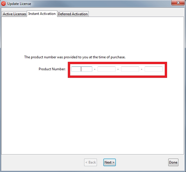 When performing an instant activation with 4D. It is possible to copy the entire license and paste it into the any field. The entire license will be automatically split into the boxes. Also if there are dashes (-) they will automatically get removed.