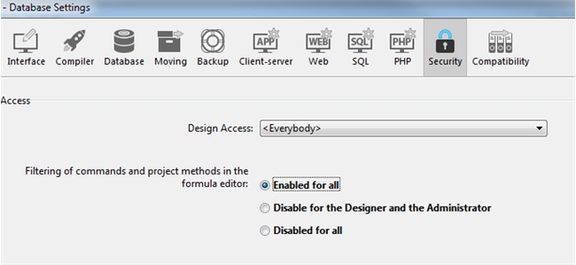 Starting with 4Dv14, the query editor received an update. Due to this update there are some changes in performance with regards to the 'Filtering of commands and project methods in the formula editor' setting.