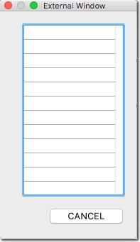 To close the external window DO NOT use the command CLOSE WINDOW. It will not close an external window and will generate an error. Instead the commands CANCEL or ACCEPT must be used. The external window will automatically close when either command is invoked within the context of the external window.