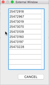 The code above is in the object method for the "Message External Window" button. In this example the task is to add entries into the external window list box. The undeclared variable is named the defalult "Column1" but the pointer variable is given a discriptive name so that there is a positive ID of what is being addressed.