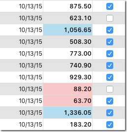 It is always a help to draw the users attention to outliers of data in a list box. One way to do this is to use a different background color for the cell that contains the outlieing data. Because most list box implementations use "Alternate Background Color" to help the user with eye control as they scan acros a row, the task is how to honor the alternate background color and applying outlier colors.