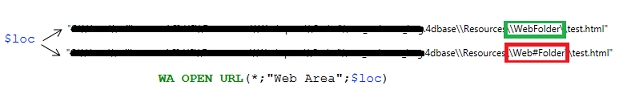4D's Web Area allows a URL to be entered using WA OPEN URL command. But it does not necessarily check when a path is URL encoded. One thing that can be over looked are folders that contain characters that require to be URL encoded. Folders created such as the following are accepted by the OS: