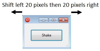 A way to grab the attention of a user is to shake the 4D form. The following method will shake the form by controlling the number of pixels to shift from left to right and interations of the shifts: